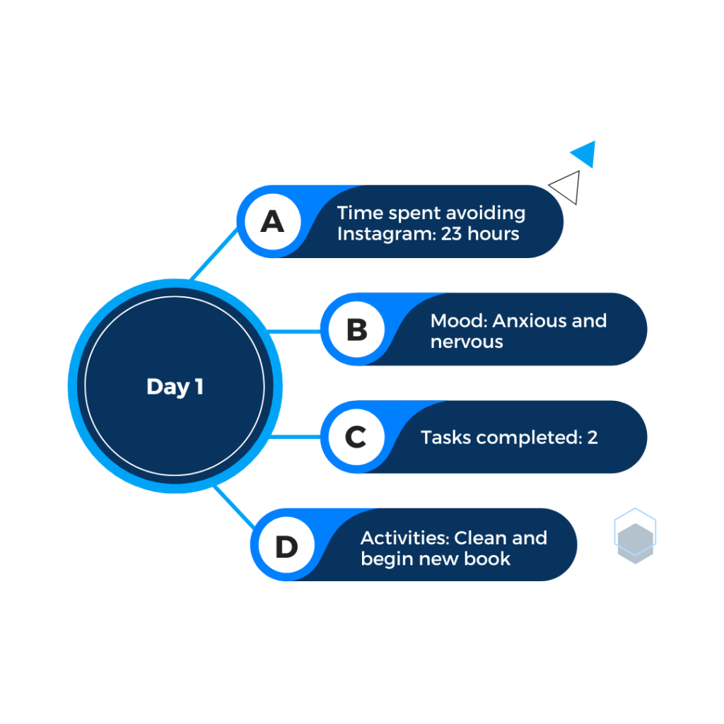 I made sure to keep a log, track my emotional state, participate in alternative activities, and track how productive I was without Instagram. I turned off all Instagram notifications such as the banners, stack, count, and list, and deleted the app off of my home screen so that I wasn’t tempted to click on it.