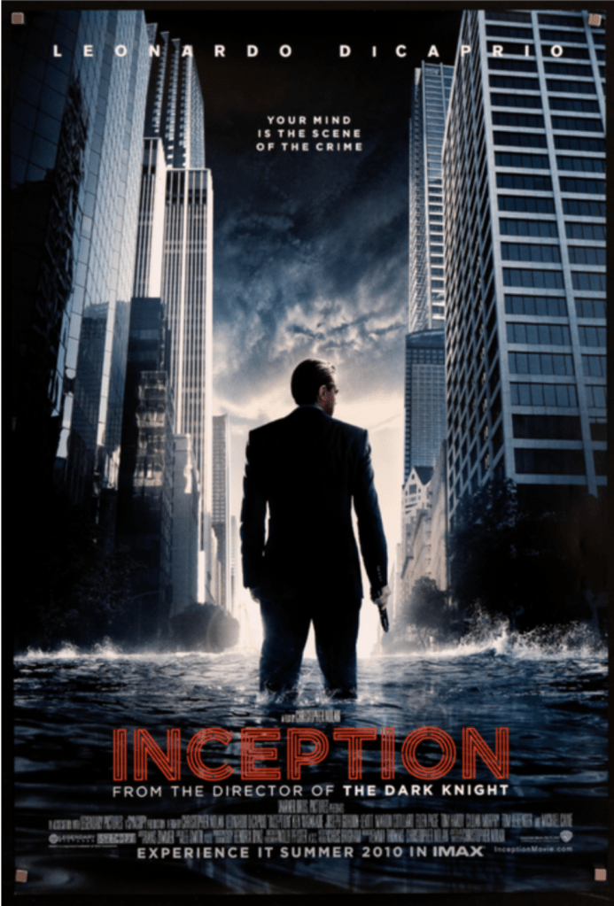 Colors play a crucial role in shaping the emotional tone of a movie poster, as they influence how viewers perceive the film and set the stage for the experience. For example, warm colors like red and orange evoke excitement and urgency, while cool colors like blue and green suggest calmness, mystery, or sadness. As noted in the article Movie Posters: The Psychology Behind Its Designs from Indigo Music, color is a strategic tool used to trigger psychological responses and engage viewers emotionally. In the Inception poster, cool blue tones dominate, reflecting the film’s suspenseful and mysterious mood, and signaling a cerebral, mind-bending narrative.
